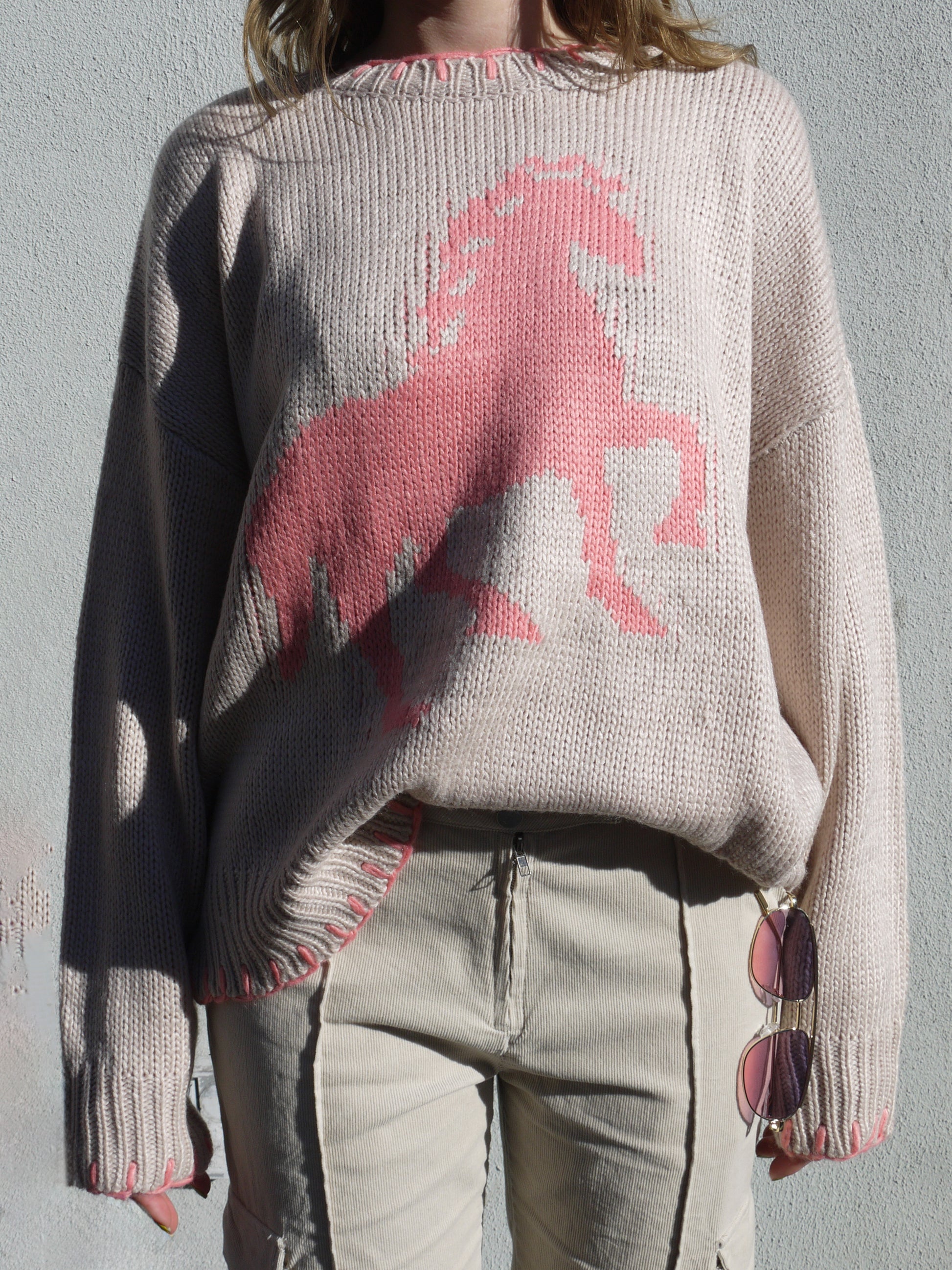 Stay cozy and stylish with our Horse Sweater. Made from comfy knit fabric with fun stitching, this sweater is the perfect cutie addition to your wardrobe. Embrace the warmth and charm of a horse with this unique and playful sweater.