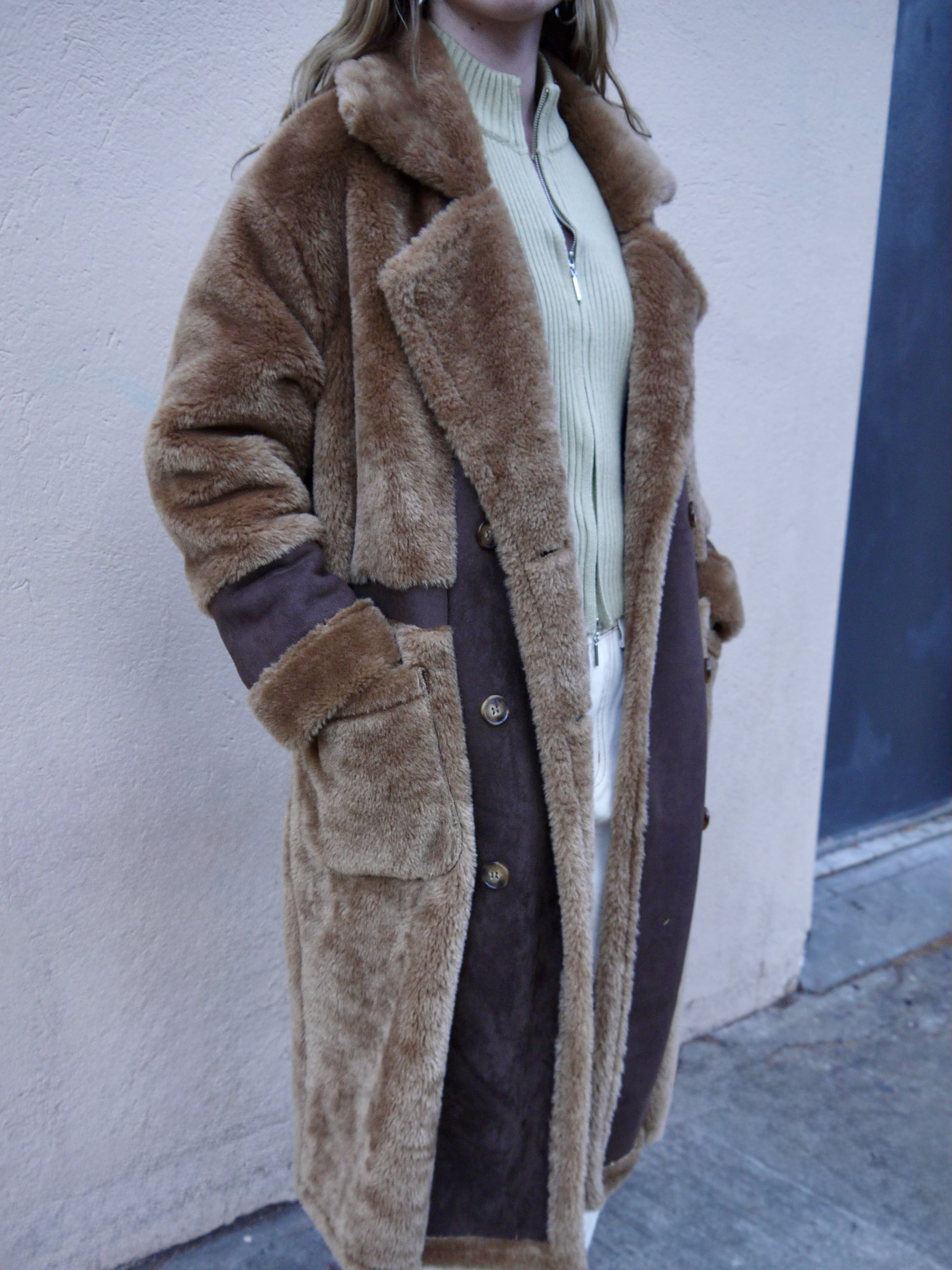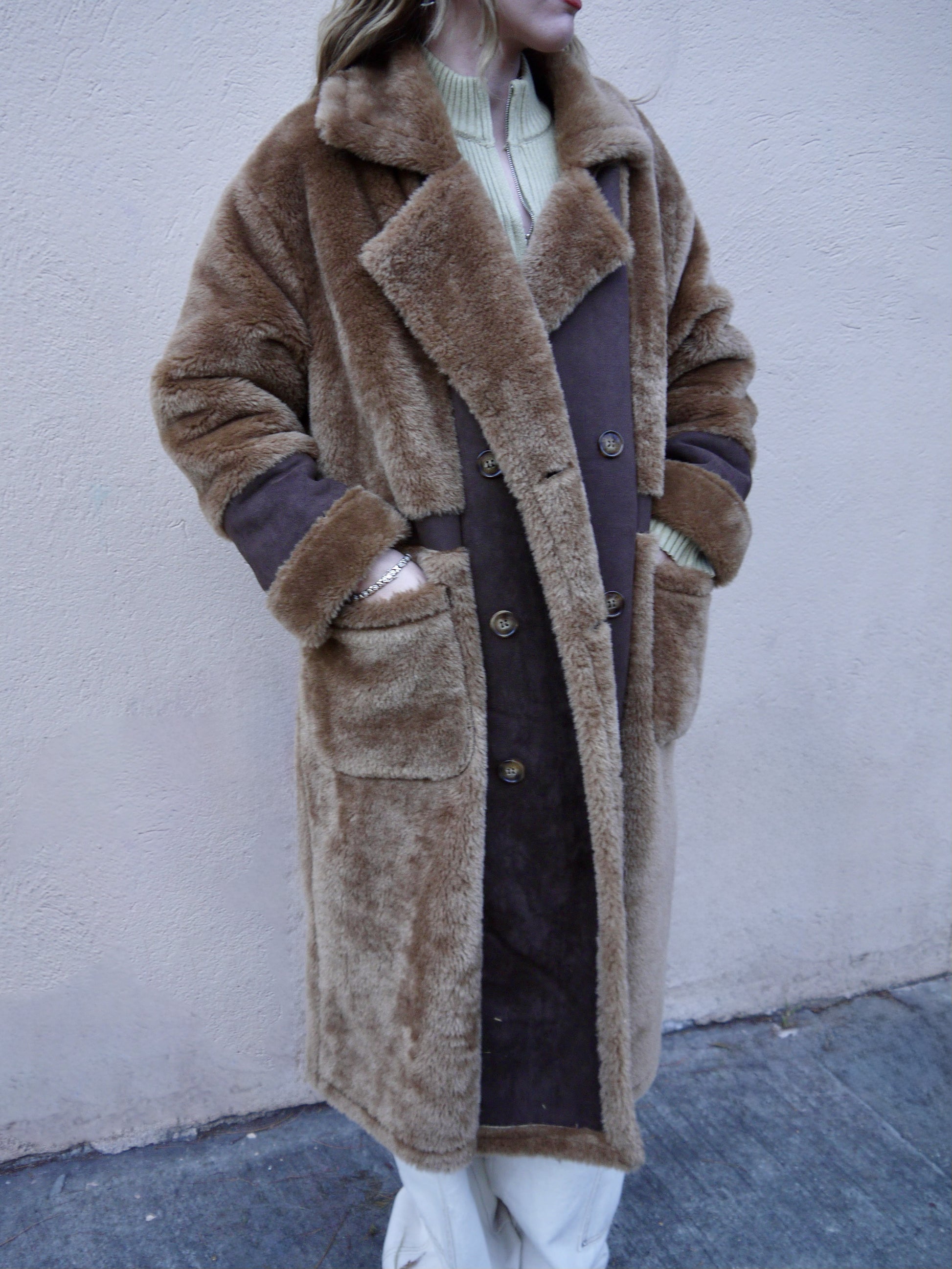 Stay warm and cozy in our fuzzy long coat. With a soft, blanket-like feel, this coat is perfect for those chilly days. Its casual design makes it versatile for any occasion. Say goodbye to the winter chill and hello to comfort and style.