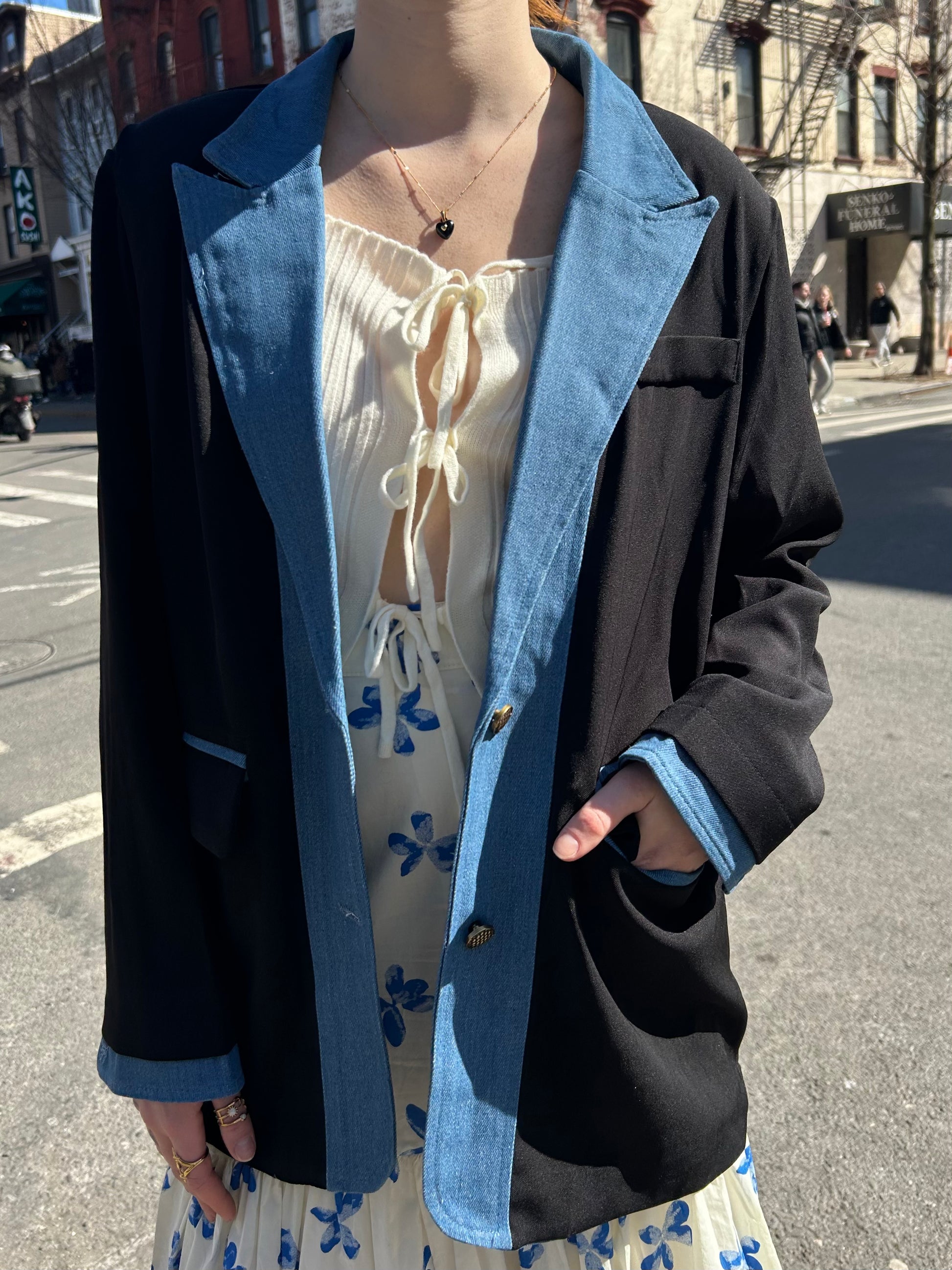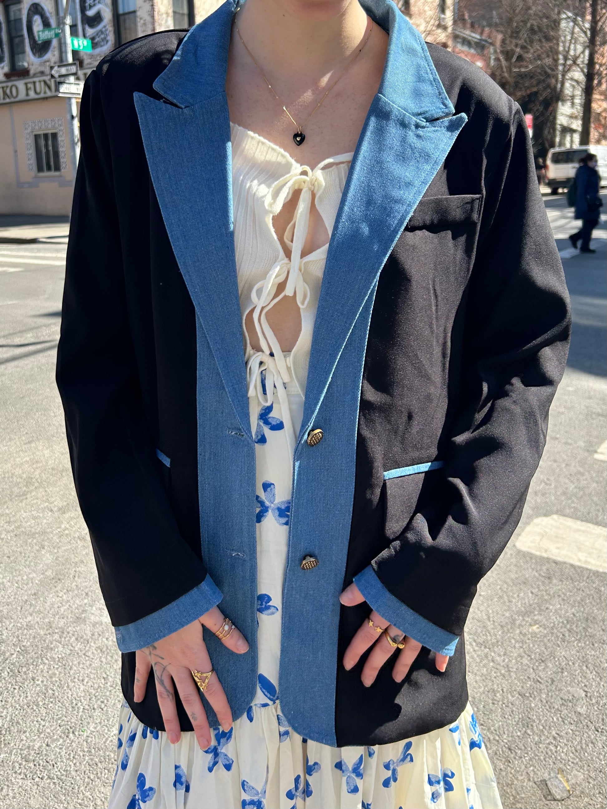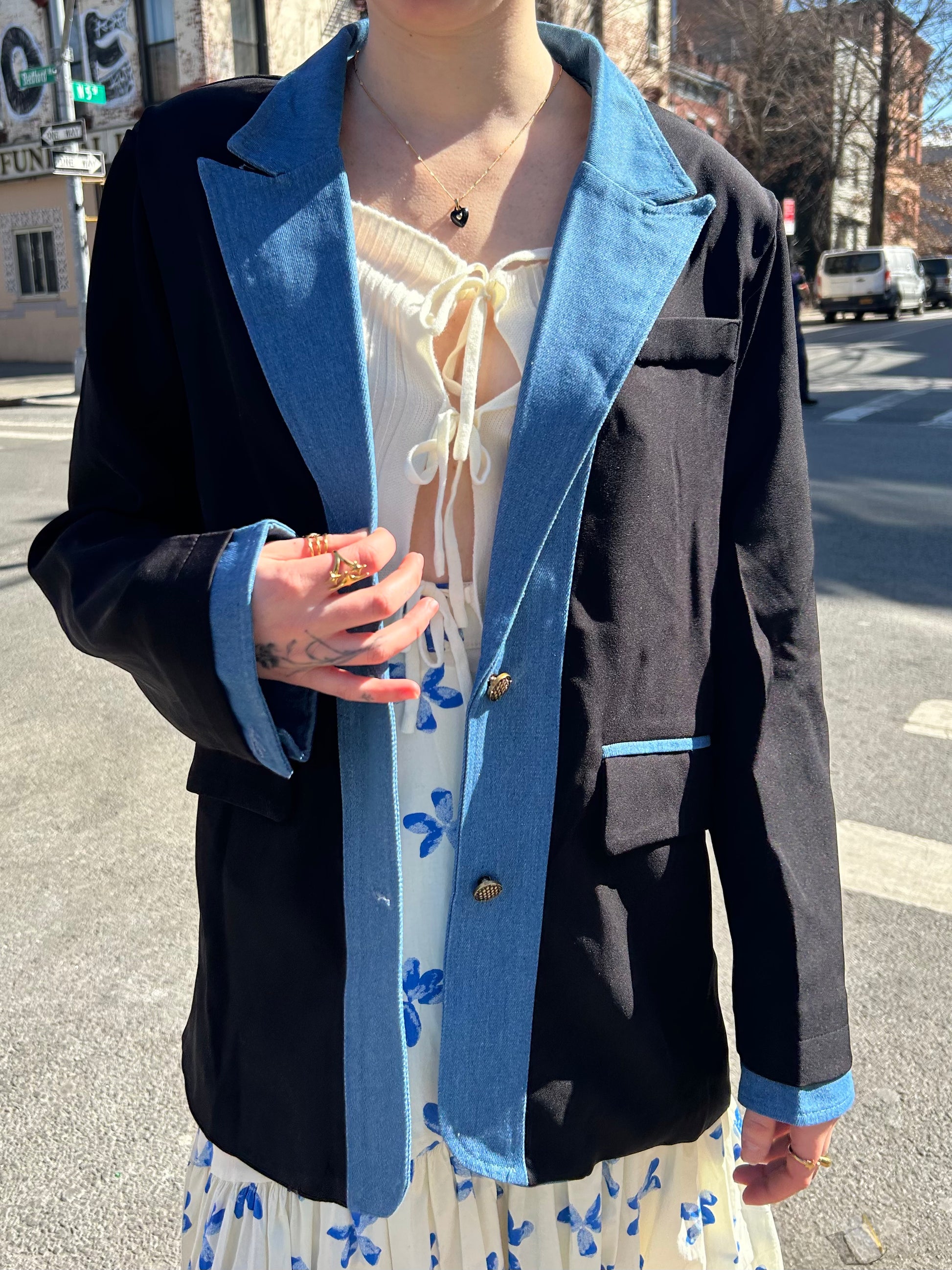 Looking for a hip and unique addition to your wardrobe? Look no further than our denim combo blazer. With its stylish design and comfortable fit, this blazer is sure to elevate any outfit