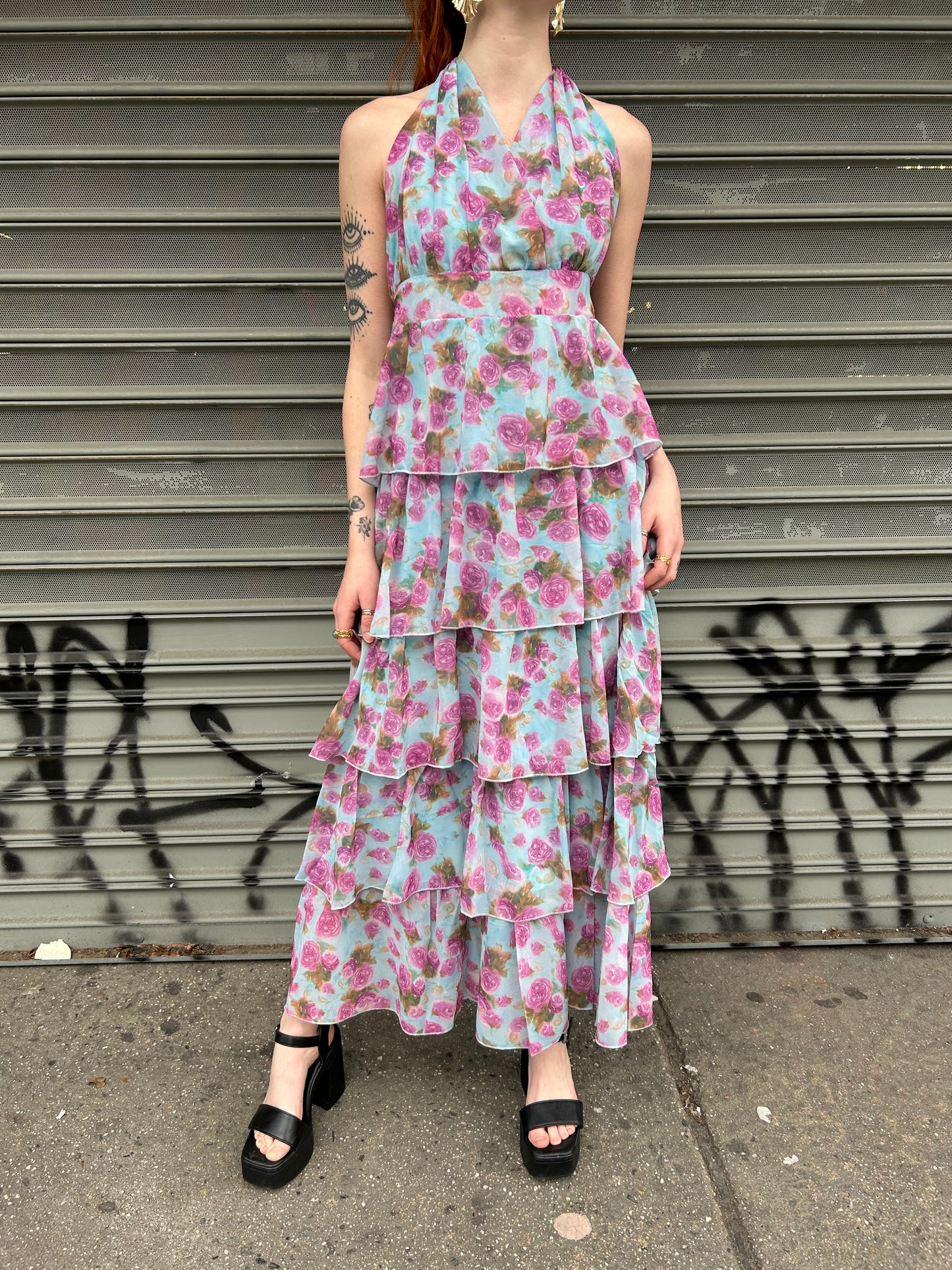 halter tiered printed dress