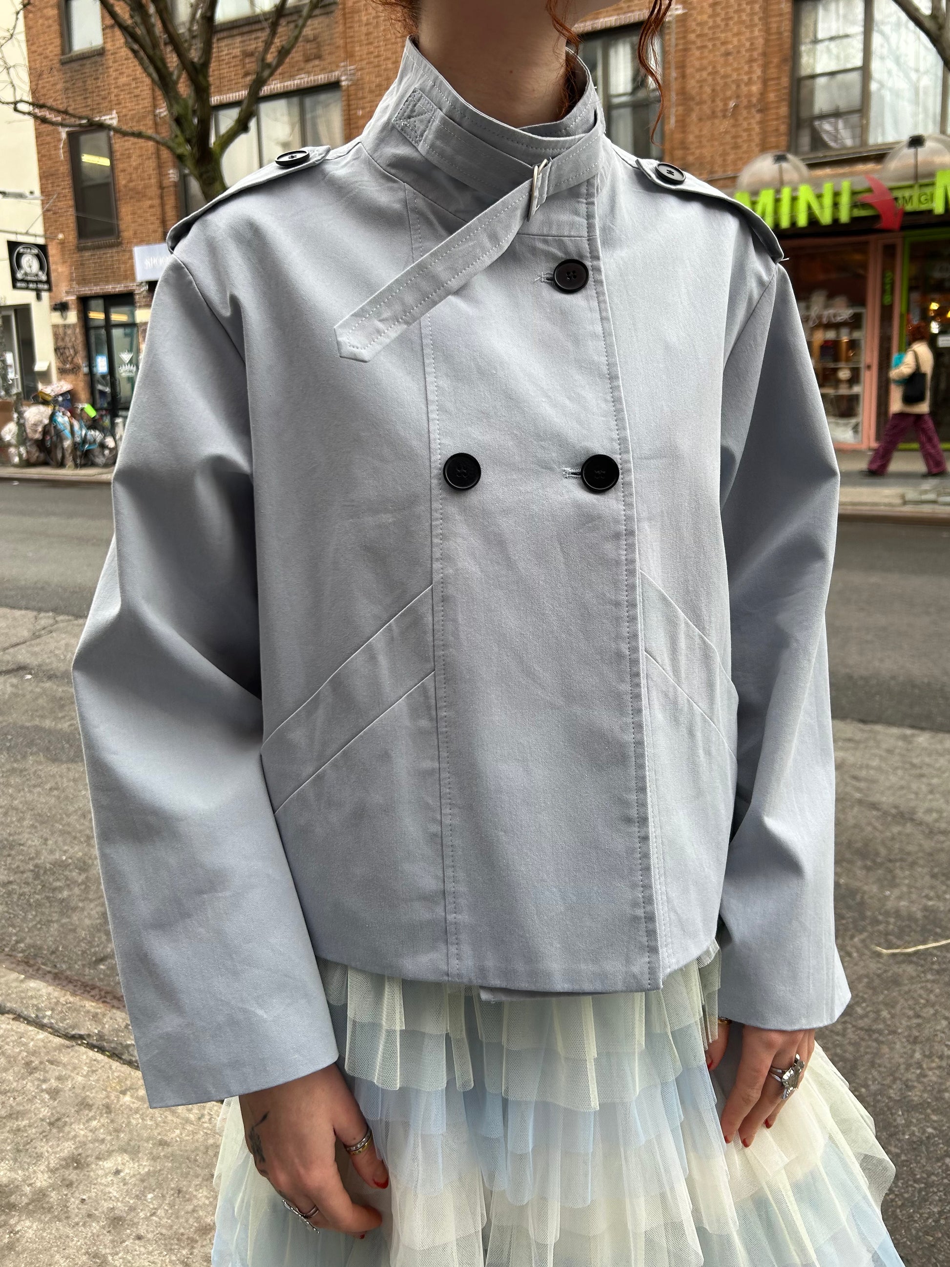 Stay cool and stylish with our practical cropped short trench jacket. Perfect for any occasion, this jacket offers both fashion and function. Stay ahead of the trends with this must-have piece in your wardrobe.